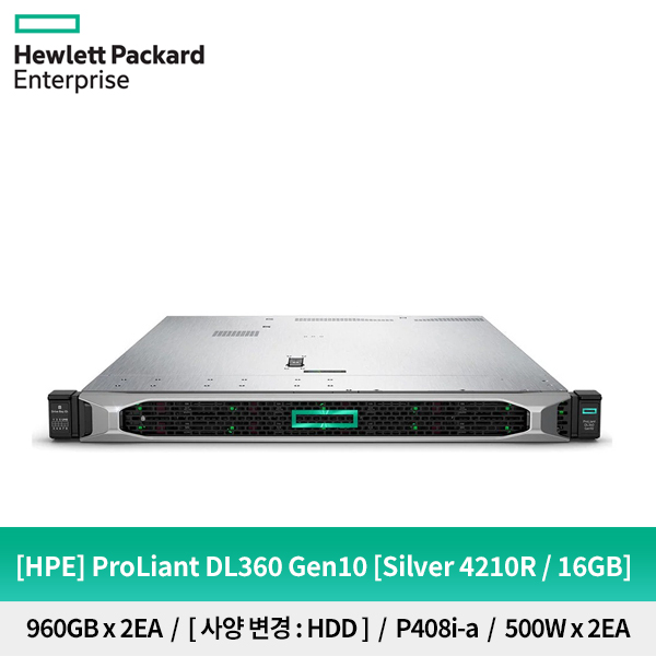 HPE DL360 Gen10 [4210R 2.4GHz 10-core 1P / 16GB-R / P408i-a / SSD 960GBx2EA / 500Wx2EA] (P23578-B21) - 소량재고