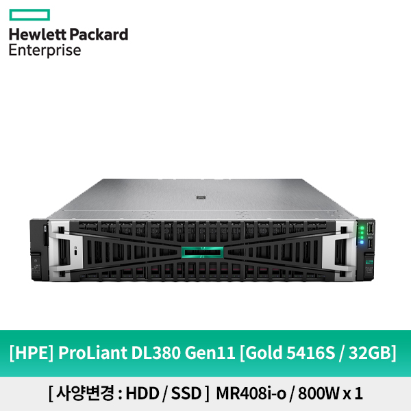HPE DL380 Gen11 5416S 2.0GHz 16-core 1P 32GB-R MR408i-o NC 8SFF 800W PS Server (P52561-B21)