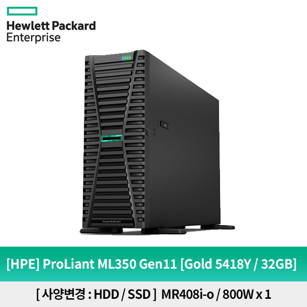 HPE ML350 Gen11 5418Y 2.0GHz 24-core 1P 32GB-R MR408i-o 8SFF 800W RPS Server (P53570-371)