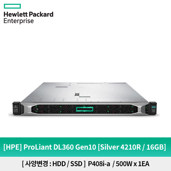 HPE DL360 Gen10 [4210R 2.4GHz 10-core 1P / 16GB-R / P408i-a / 500W] (P23578-B21) - 소량재고