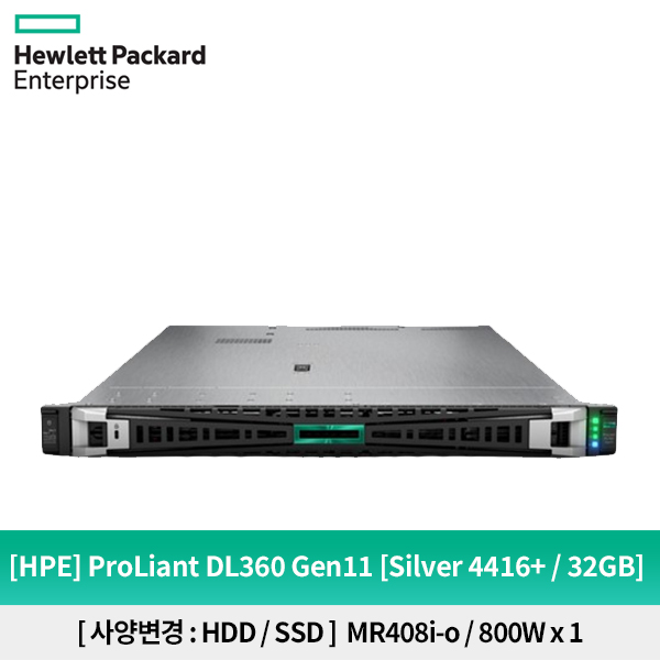 HPE DL360 Gen11 4416+ 2.0GHz 20-core 1P 32GB-R MR408i-o NC 8SFF 800W PS Server (P60734-B21)