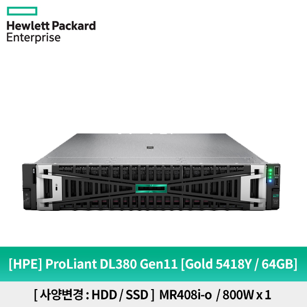 HPE DL380 Gen11 5418Y 2.0GHz 24-core 1P 64GB-R MR408i-o NC 8SFF 800W PS Server (P60638-B21)