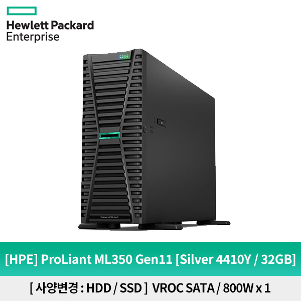 HPE ML350 Gen11 4514Y 2.0GHz 16-core 1P 64GB-R MR408i-o 480GB SSD 2EA 800W 2EA Server (P84664-375)